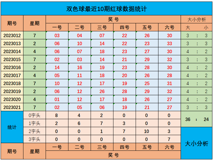 上期红球大小比为3:3,近10期大小比为36:24;总体上大数走势较热,本期温雅大数较上期走势保合手,推选大小比为:3:3